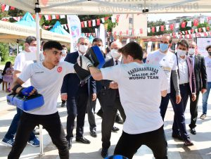 Valisi Ömer Faruk Coşkun: “Türkiye’nin 81 ilinde kutlanmakta olan Avrupa Spor haftası etkinliklerini bu yıl da pandemi sürecinden dolayı tedbiri elden bırakmayarak kutluyoruz. Bilimsel araştırmalar düzenli bedensel aktivitelerin insan sağlığı üzerinde çok olumlu etkiler yarattığını ortaya koymaktadır” diye konuştu. Açılış konuşmalarının ardından açık alan etkinliklerine geçildi. Bisiklet, boks, wushu, eskrim ve güreş dallarında gerçekleştirilen gösterilerin ardından tüm katılımcılar spor branşlarının tanıtıldığı stantları gezdi.